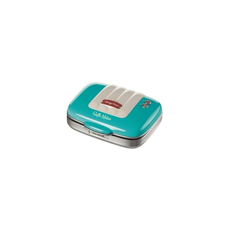 Découvrez le Gaufrier Ariete Party Time bleu, un petit appareil de cuisine idéal pour préparer des gaufres maison. Avec une puissance de 700 W, il permet de cuire deux gaufres rectangulaires simultanément grâce à ses plaques antiadhésives. Inspiré du design rétro des diners américains des années 50,