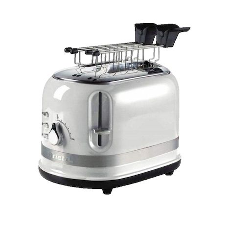 Le grille-pain Moderna par Ariete est un appareil alliant design et fonctionnalité. Il dispose de deux fentes et d'une puissance de 815 W, permettant de toaster simultanément deux tranches. L'appareil offre 6 niveaux de brunissage ainsi qu'un système d'éjection automatique. Il propose également des fonctions de cuisson, réchauffage et décongélation. Fabriqué en inox avec une finition blanche élégante, il s'intègre parfaitement dans une cuisine contemporaine. Ce grille-pain est équipé de pieds antidérapants pour plus de stabilité. Son espace de rangement permet de ranger le cordon facilement.