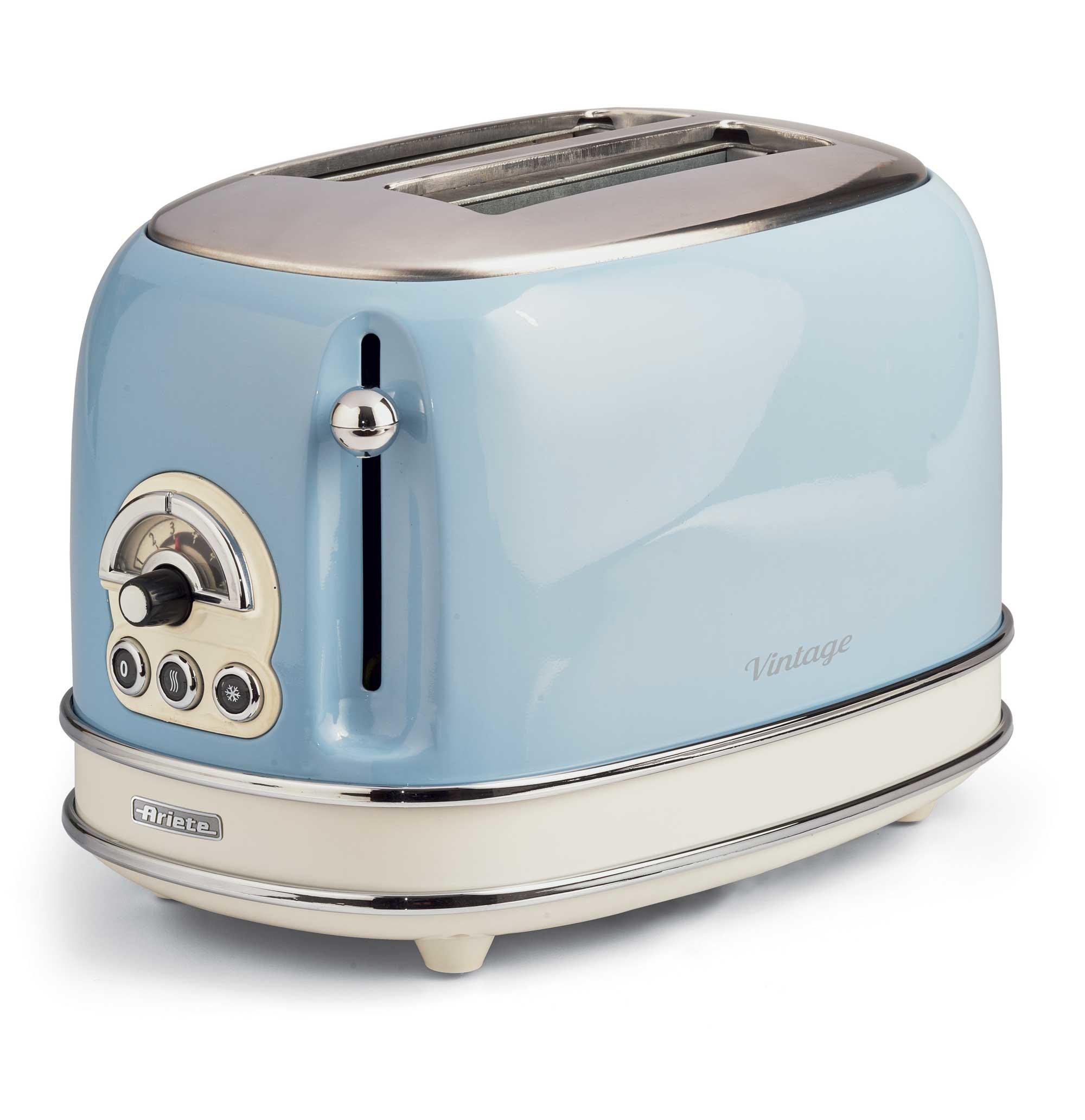 Ariete 155/3 Grille-pains Vintage Ariete 155/3 l?allié parfait pour le petit déjeuner. Préparez facilement vos toasts grâce à ce grille pain 2 fentes (139 x 38 cm) qui vous permet de griller simultanément 2 toasts ou sandwichs. Choisissez le niveau de brunissage souhaité à l?aide du thermostat 6 positions. Son design Vintage s?accordera parfaitement à votre cuisine et lui apportera la touche italienne qu?il lui manquait.