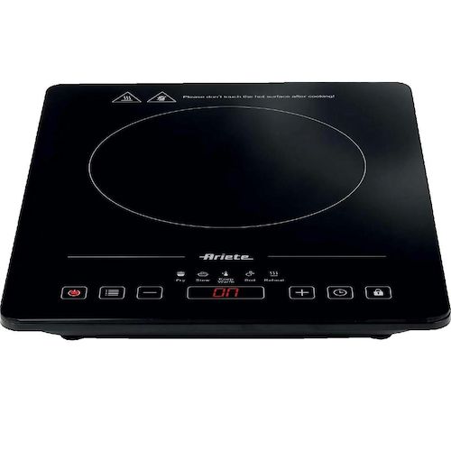 La plaque à induction Ariete 1997/00 est conçue pour une utilisation polyvalente en cuisine, bureau ou camping. Dotée d'une surface en vitrocéramique noire, elle offre une puissance maximale de 2000W pour une cuisson rapide et efficace. Elle dispose de 10 niveaux de puissance et d'un minuteur réglable jusqu'à 4 heures. Elle garantit une sécurité optimale grâce à un système de protection pour enfants et un arrêt automatique. Compacte et légère, avec des dimensions de 290 mm de largeur, 370 mm de profondeur, et 45 mm de hauteur, elle est facile à nettoyer et à intégrer dans tout espace. Le contrôle tactile est positionné en haut devant, et l'appareil propose 5 programmes pré-définis pour plus de commodité.