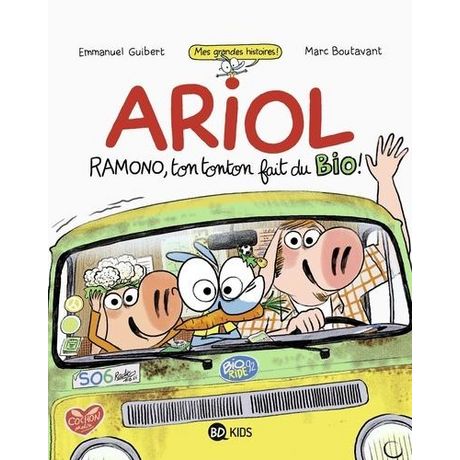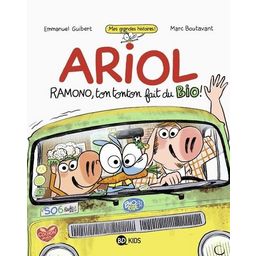 Le tonton de Ramono, Jean-Soue, est épicier-bistro-marchand de journaux au village de Saucy-le-Sonsec. Une fois par mois, il fait une tournée en ville pour vendre ses bons produits bio. Et ce mois-ci, il emmène Ramono et Ariol. Quelle fête ! Le programme : aller chez madame Tirjus, puis chez madame Fourrastier, puis... Rapidement pourtant, tout dégénère ! D'abord, Ariol et Ramono découvrent, cachés dans la camionnette de Jean-Soue, Marmouge et Péduret, ses deux amis. Ensuite, la petite troupe est suivie... mais par qui ? Résultat : un accident de voiture et un policier qui embarque tout le monde au poste ! Débrouiller l'affaire prend un peu de temps, mais tout devient clair finalement. C'est Véra, amoureuse de Jean-Soue, qui le suivait depuis le matin, jalouse de toutes ses clientes de la ville. Tout le monde repart et Jean-Soue et Véra décident de se marier... Et Ariol est invité !