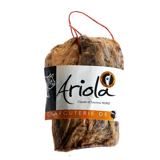 Carré de porc issu de porcs sélectionnés, salé manuellement au sel sec, séché dans nos séchoirs situés à 800m d'altitude au cœur des montagnes Corses.