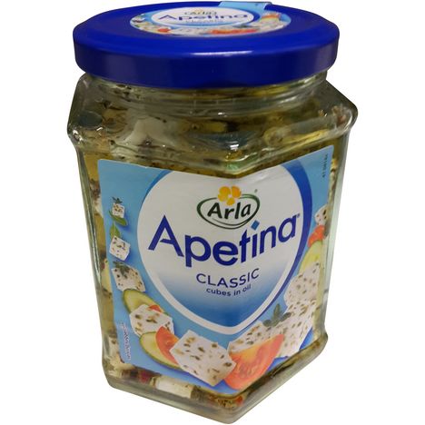 Dés de fromage au lait de vache pasteurisé dans l'huile aux aromates