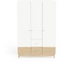 L'armoire LINIA, conçue pour les chambres de bébés et d'enfants, allie esthétique et fonctionnalité. Avec 3 portes et 4 tiroirs, dont les façades sont sublimées par un placage en pin, cette armoire offre un espace de rangement généreux et organisé : un tiers dédié à la lingère avec 4 étagères, un tiers penderie équipée de 2 étagères et d'un tiroir pour les vêtements suspendus, et le dernier tiers pour la lingère avec 4 étagères supplémentaires ainsi qu'un grand tiroir pour les articles plus volumineux. Reposant sur des pieds en hévéa robustes, sa structure en MDF laqué est peinte avec une peinture éco-responsable à base d'eau, sans métaux lourds, garantissant un environnement sain pour votre enfant.