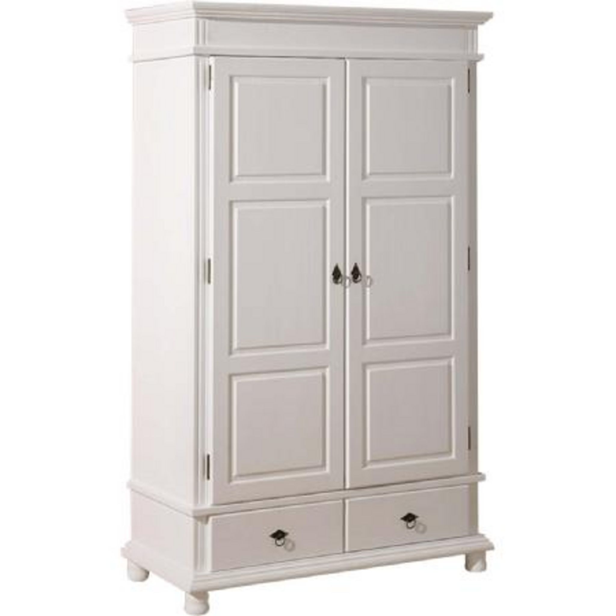 L'armoire DANZ avec ses 2 portes et 2 tiroirs en pin massif de style charme vous apporte un grand espace de rangement.