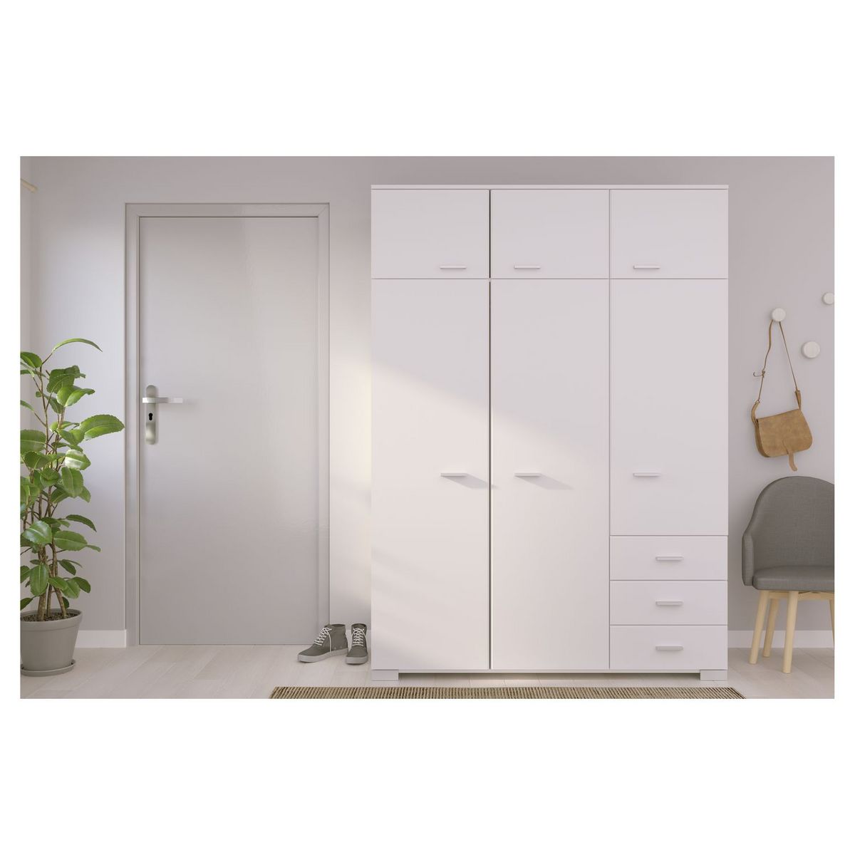 - Armoire 6 portes et 3 tiroirs en panneau de particules revêtu papier décor blanc