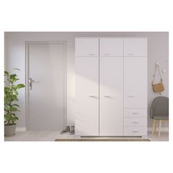 Vous recherchez un meuble de rangement complet pour y disposer vos vêtements dans votre chambre à coucher ? Découvrez notre grande armoire de la collection Galaxy ! Composée d'une partie penderie sur la gauche pour suspendre vos vestes, robes, pantalons et d'une partie lingère sur la droite pour plier vos pulls et tshirt (dans les 4 niches) et stocker vos sous-vêtements (dans les 3 tiroirs), cette armoire vous apportera tous les espaces de rangement nécessaires pour vous et votre moitié.