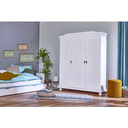 Cette armoire en pin massif vernie équipée de ses 4 étagères et d'une grande penderie fait partie des éléments essentiels pour le rangement de votre maison.