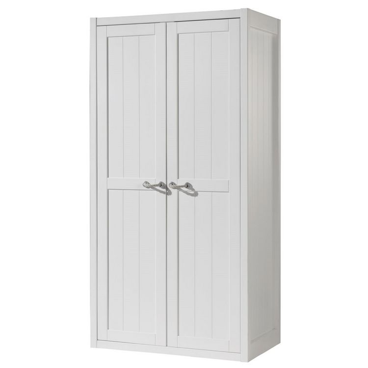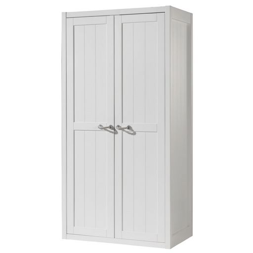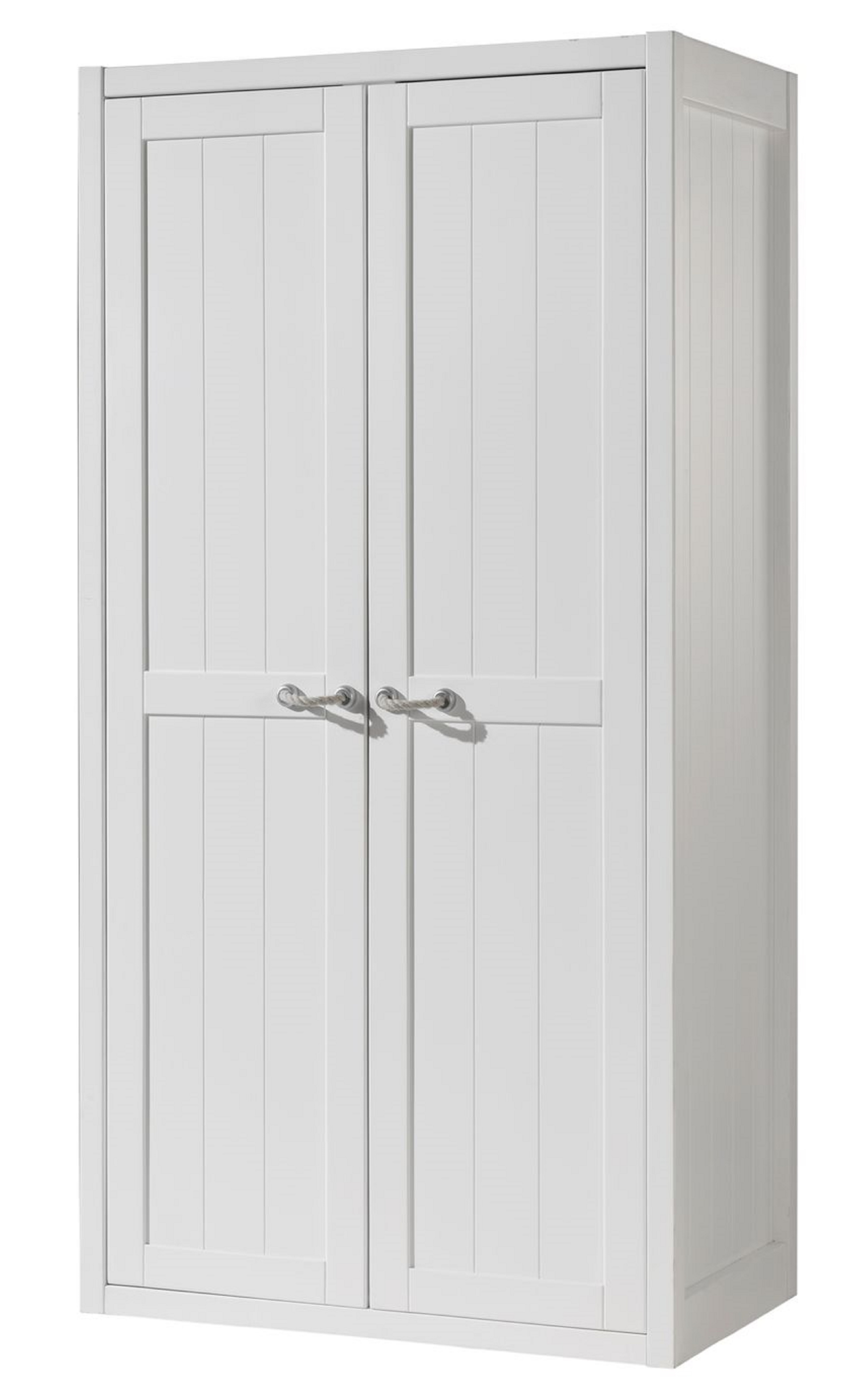 Découvrez l'armoire deux portes de la collection Marine. Ses poignées en corde et son design bord de mer vous séduirons. L'intérieur est composé de deux étagères et d'une penderie.