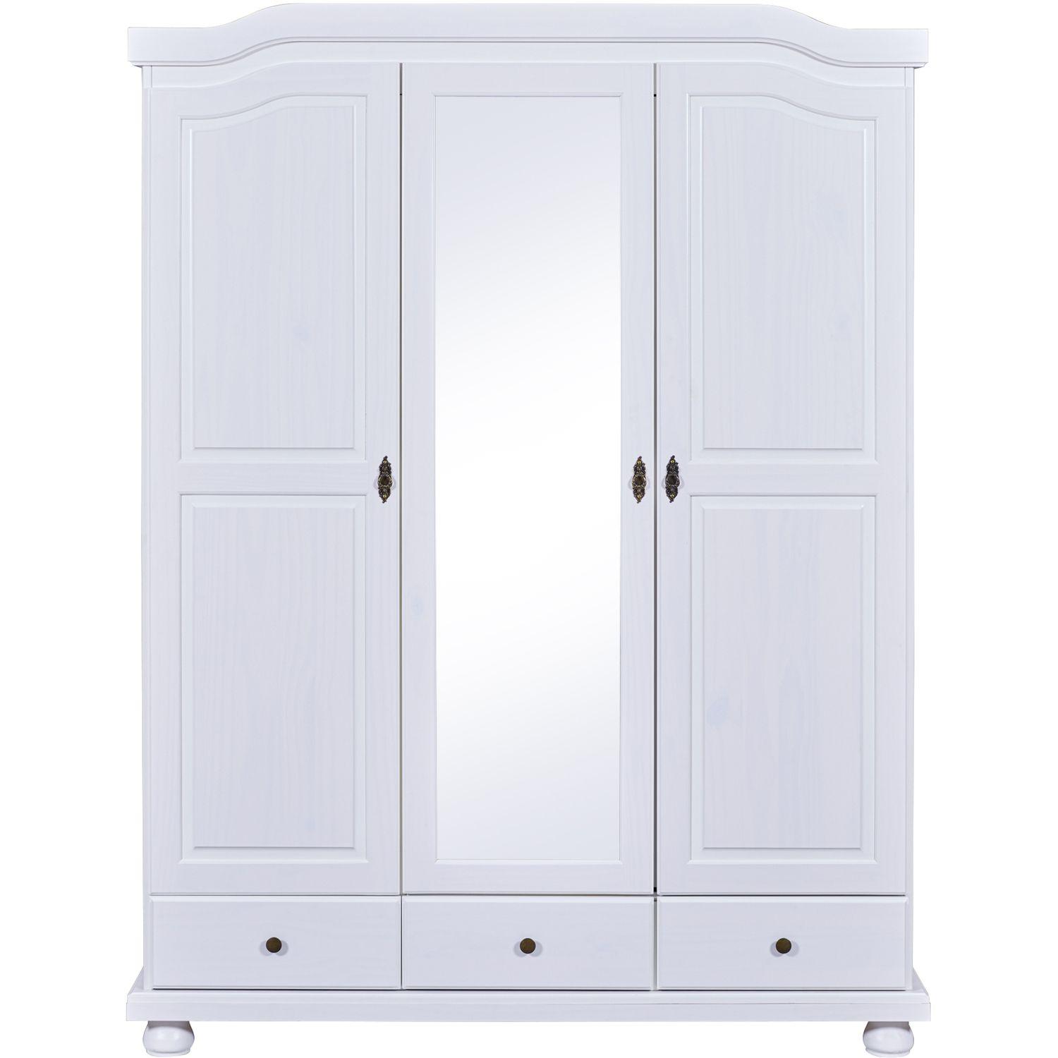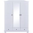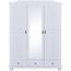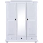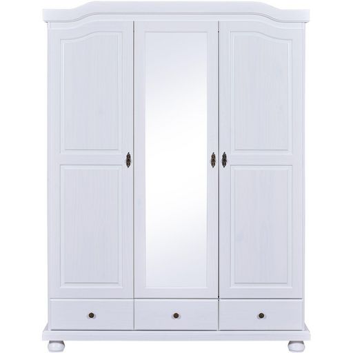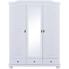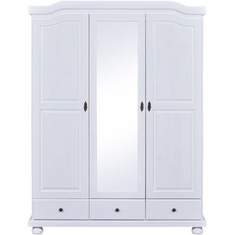 L'armoire BASTIAN, en pin massif vernis blanc, est l'addition idéale à votre chambre grâce à sa grande capacité de rangement. Avec 3 portes, dont une avec miroir, 3 tiroirs, 5 étagères et une penderie, elle répond à tous vos besoins. Son design blanc s'adapte aisément à divers décors.
