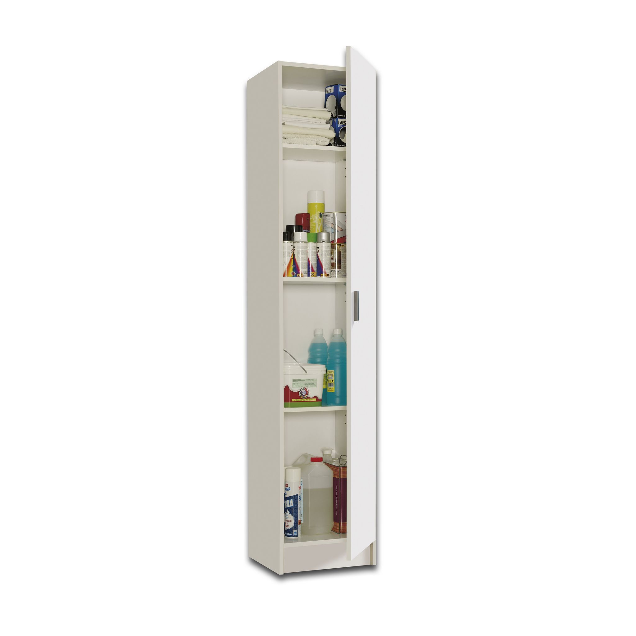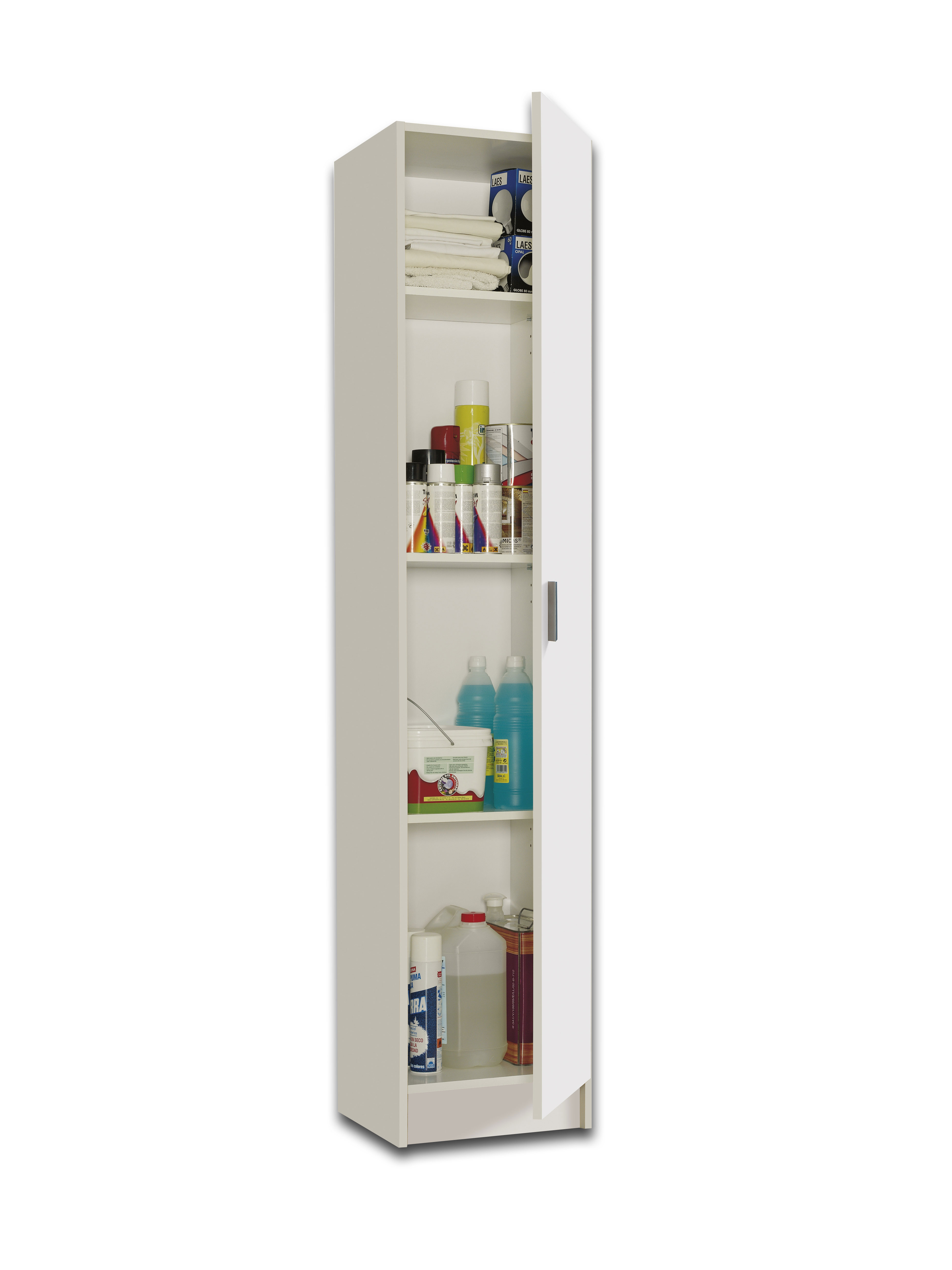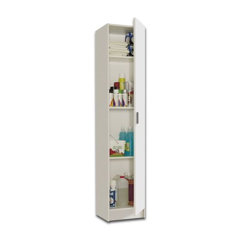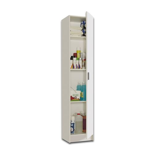 Un petit meuble pratique et peu encombrant qui peut servir de placard à balais en ne laissant que l'étagère du haut. Il se monte facilement même si la visserie est de qualité moyenne. Très utile dans un couloir ou un endroit exigu.