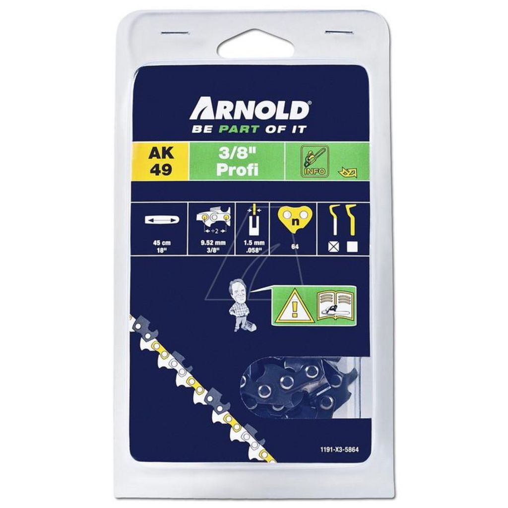 Chaîne de tronçonneuse 3/8 , 1,5 mm, 64 maillons d'antirebond - gouges demi-rondes