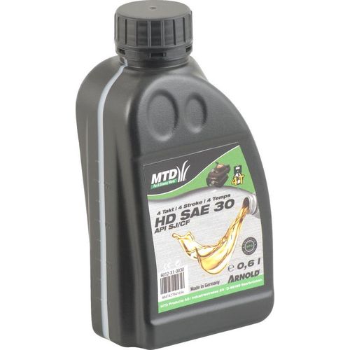 Huile moteur d&rsquo,été SAE 30 HD API SF/CD, 0,6 L. Huile monograde d&rsquo,été de haut de gamme, convient pour la plupart des moteurs 4temps des petites machines à moteur thermique. Répond aux normes API SF/CD
