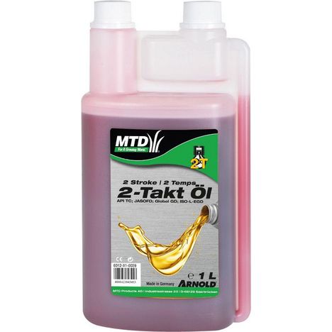 Bidon doseur de 1 L Huile 2 temps semisynthétique APITC à faible émission de fumées avec additif «,Easy Run»,, convient pour les mélanges et le graissage séparé.