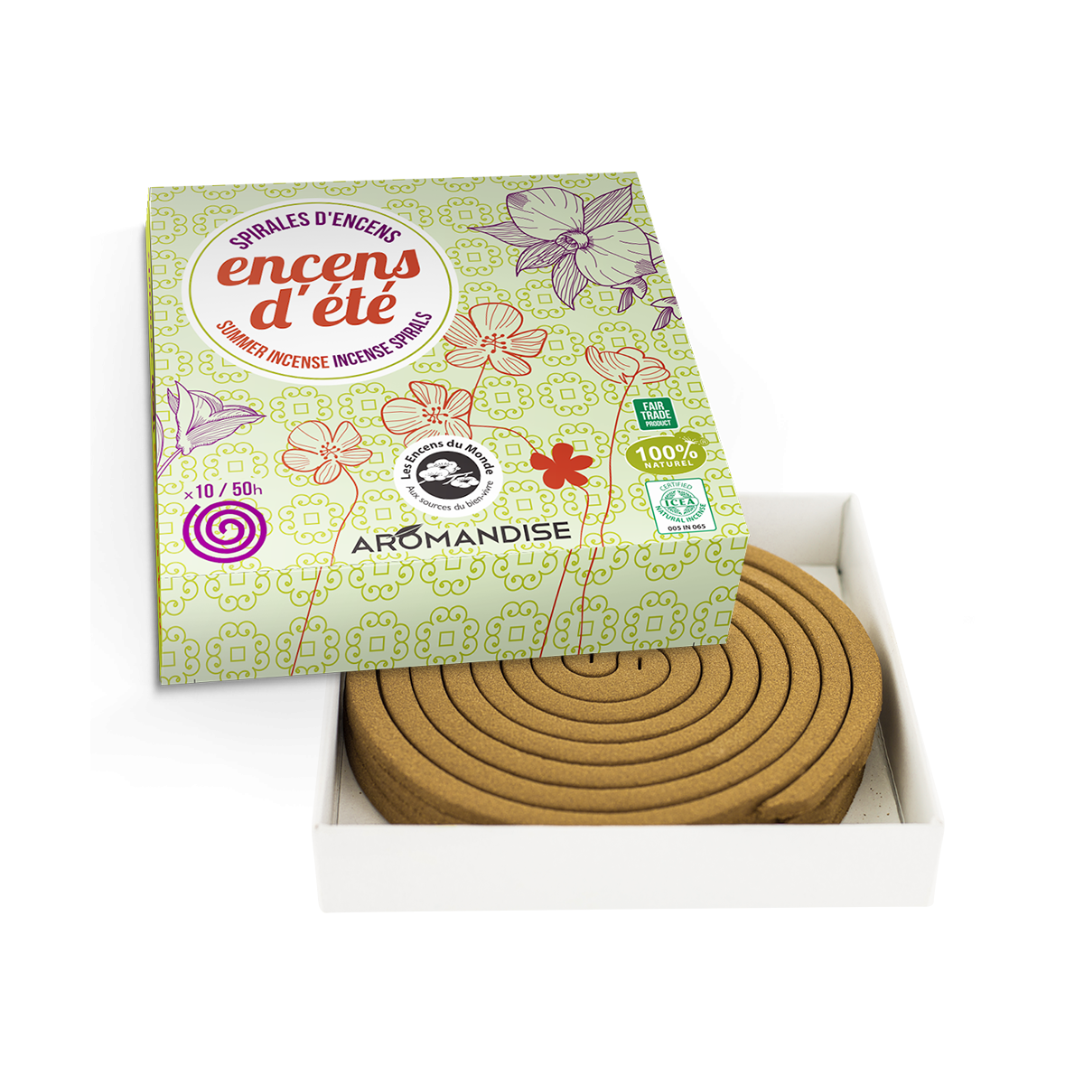 2 kits d'encens anti-moustique. Les moustiques sont de retour et vous souhaitez les éliminer grace à des produits naturels et sains pour votre santé et celle de votre famille? Les spirales d'encens au pyrèthre des Encens du Monde sont la solution idéale. Fabriquées à partir de pyrèthre, extrait naturel d'une sorte de chrysanthème, les spirales d'encens Encens du Monde élimineront tous les miustiques à proximité en quelques minutes. En plus d'être un excellent répulsif, elles sont innofensives pour la famille et pas du tout appréciées par les moustiques! Chaque spirale dure 7 heures pour une journée ou une nuit complète en toute tranquilité et sans moustiques. Il vous suffrira de suspendre votre spirale au support métallique fourni dans la boîte et le tour est joué! Encens 100% naturel.