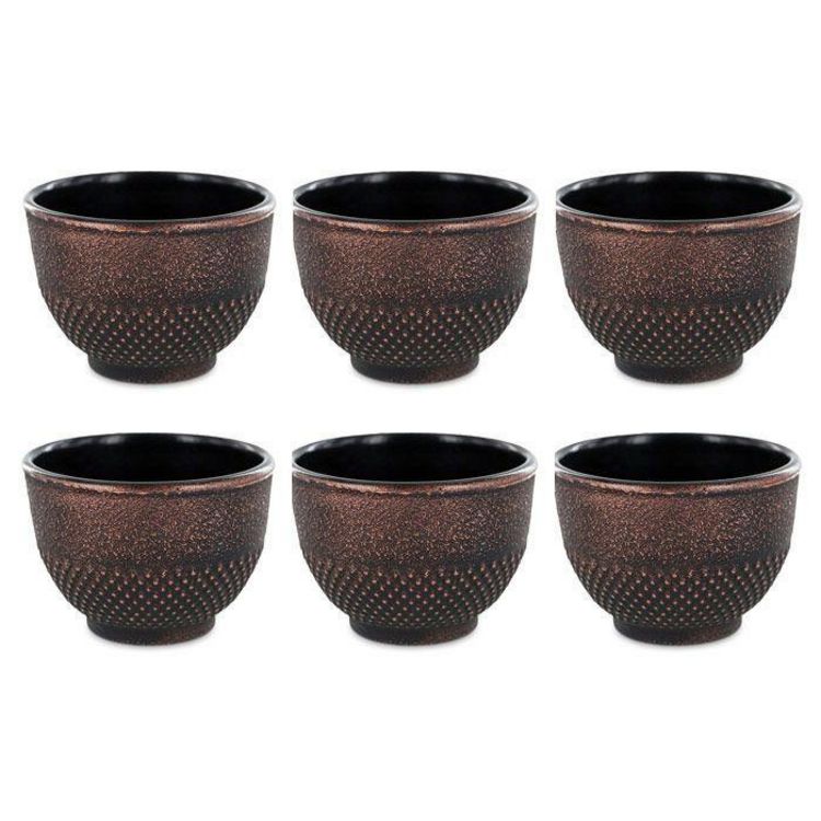 6 tasses en fonte de Chine noir & bronze 15 cl