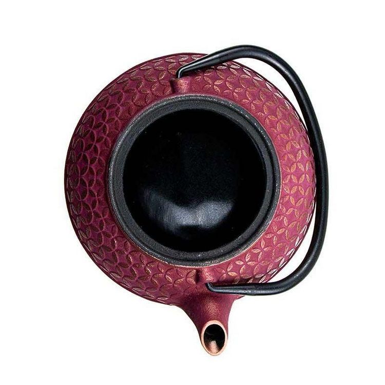 En savoir +Une théière asiatique en fonte rose avec de jolis motifs et reflets dorés.Tsubaki veut dire 'camélia' en japonais. L'intérieur de la théière est émaillé et le filtre est en acier inoxydable.Préparez toute sorte de thé avec cet objet d'art du quotidien. Déposez le thé dans le filtre, puis versez l'eau chaude. Attendez le temps de l'infusion, puis dégustez votre thé ! C'est dans les années 300 en Chine que la fonte a été découverte.Les Chinois boivent traditionnellement leur thé directement à la tasse, c'est avec la dynastie Ming que les premières théières ont fait leur apparition. La théière en fonte Tsubaki est dite « sans mémoire ».Ainsi, il est possible de boire toute sorte de thé avec car son intérieur émaillé empêche la sauvegarde des arômes. Conseils d'entretien : Avant la première utilisation, remplissez plusieurs fois votre théière Tsubaki avec de l'eau bouillante 2, puis séchez avec un torchon sec.Lors du nettoyage de votre théière, laver à l'eau claire, en évitant les détergents, puis essuyer l'extérieur de la théière avec un chiffon doux. 0,6 L.