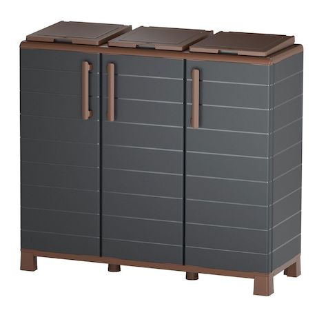 Abri Poubelles 3 Sacs Anthracite - Armoire Cache Poubelle de Tri Sélectif 102 x 37 x 90 cm Terrasse, Restaurant Art Plast