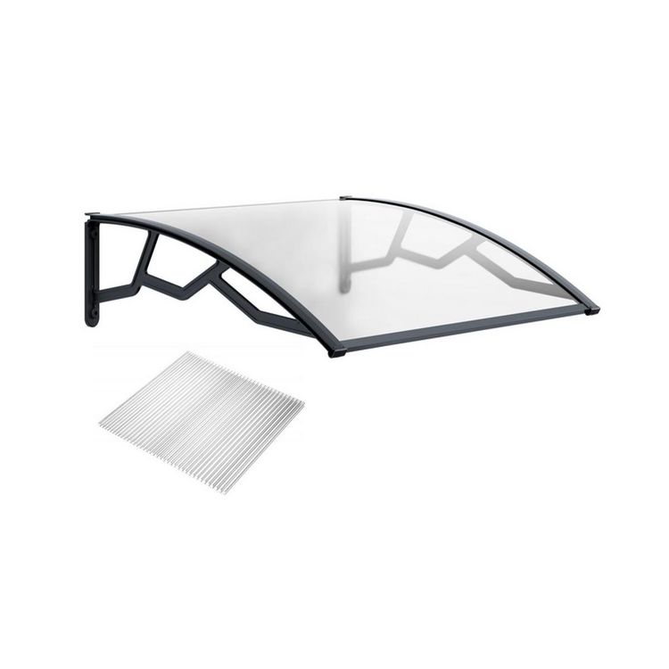 Auvent de Porte d'Entrée 100 x 120 cm Transparente - Polycarbonate Alvéolé Marquise Extérieure Bras Polypropylène Art Plast