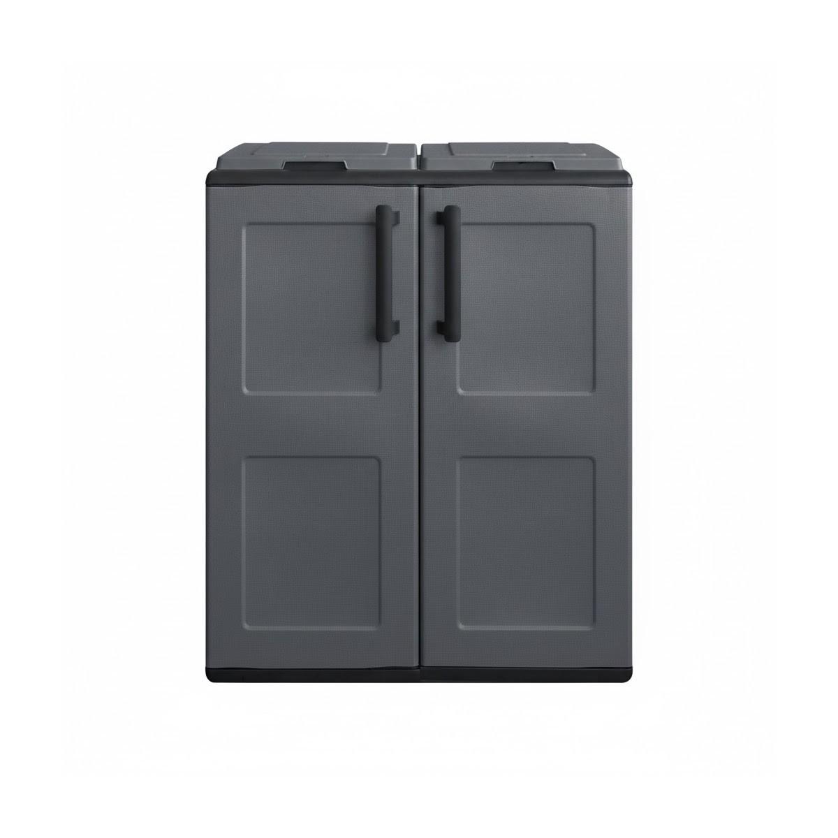 Cache Poubelles de tri Selectif 2 Sacs Meuble mi- hauteur Dim 68 x 37 x 84cm 2 Anneaux de support de sac 2 Portes Art Plast