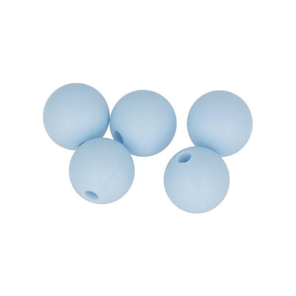 Sachet de 5 perles rondes en silicone bleu pastel - 10 mm. Avec ces perles de silicone, vous pouvez fabriquer des accessoires (pendentifs, colliers) à mâcher pour votre bébé. Les perles de silicone aident au développement des dents.
