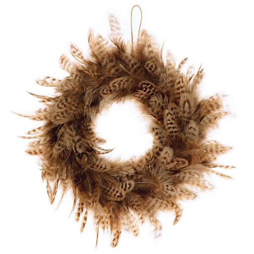 Donnez un style bohème à votre décoration avec cette jolie couronne de plumes tigrées de 28 cm à suspendre !