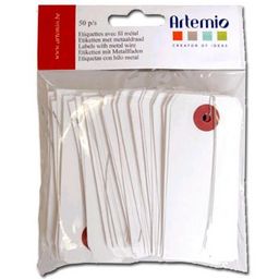 Avec ces 50 étiquettes, vous pourrez informer, décorer... et surtout illustrer vos travaux manuels ! Ces étiquettes sont toutes percées d'un trou rond avec un oeillet rouge. Elles sont accompagnées d'un fil métalliquqe fin. Dimensions : 9 x 4 cm