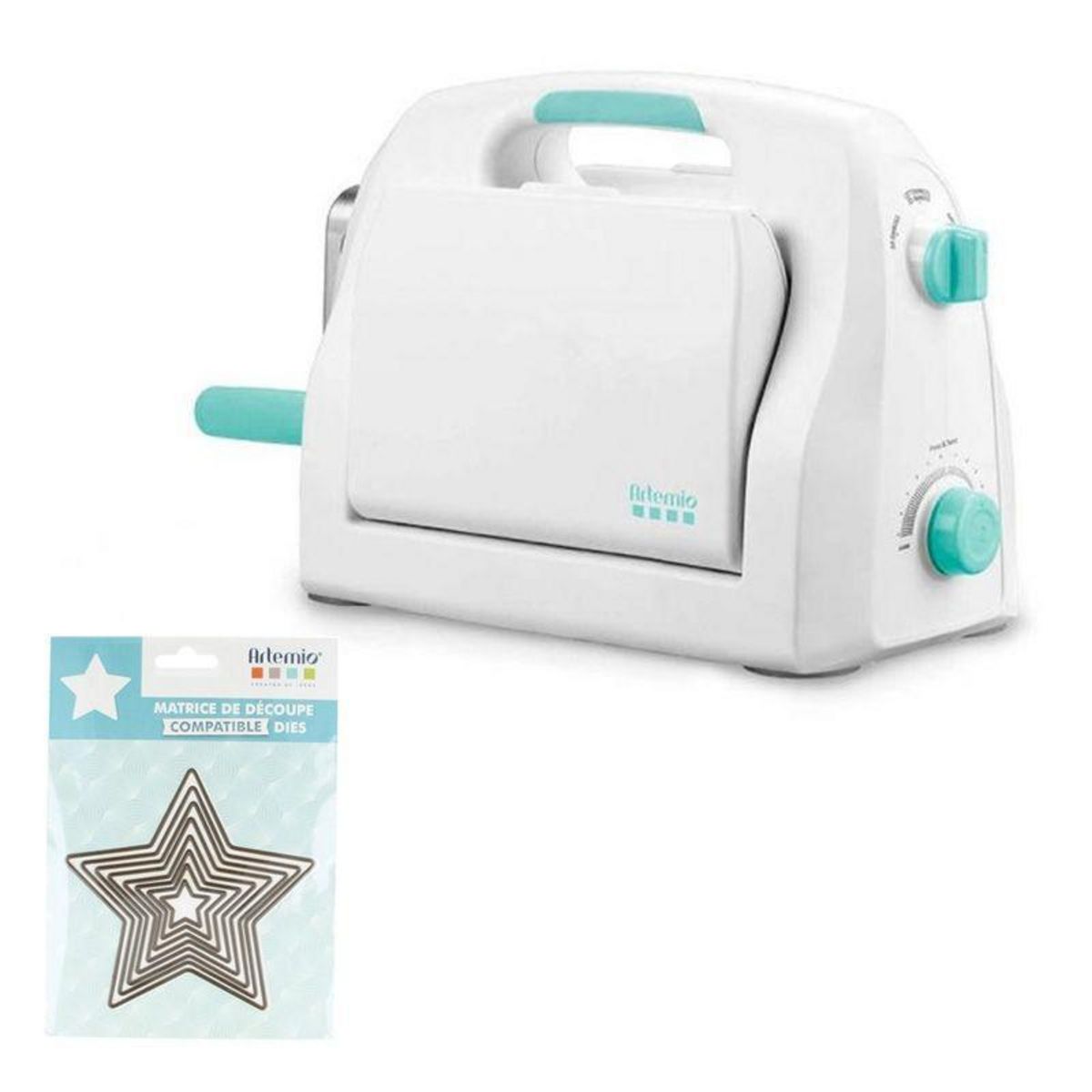 Machine de découpe et d'embossage Happycut A4 et 8 matrices étoiles. Découvrez la nouvelle HappyCut by Artemio, une machine de découpe et d'embossage adaptée à tous types de supports (papier, feutrine, cuir, tissu, liège, polyester, toile pour reliure) grâce à son système de réglage de la pression facile. La machine propose les 4 fonctions suivantes : embossage 2D & 3D, impression typographique et découpe. La machine de découpe Happycut d'Artemio permet d'embosser et découper les matières au format A4 maximum (la matrice de découpe peut évidemment être plus petite). Elle possède une poignée, une manivelle et également un espace de rangement et des pastilles anti-dérapante. Cette machine ne nécessite pas d'alimentation électrique. Elle est totalement manuelle. Sont fournis avec cette machine : 1 plaque de base, 1 tapis de découpe, 1 plaque d'adaptateur et 8 matrices de découpe étoiles. Les matrices de découpe Artemio Etoiles mesurent 12 x 11,4 cm, 10,5 x 9,9 cm, 9,2 x 8,7 cm, 7,8 x 7,4 cm, 6,3 x 6 cm, 5 x 4,7 cm, 3,7 x 3,5 cm et 2,3 x 2,2 cm