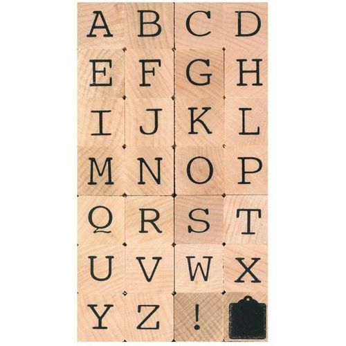 28 tampons bois alphabet majuscule + 2 caractères