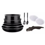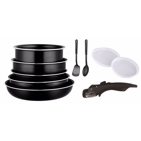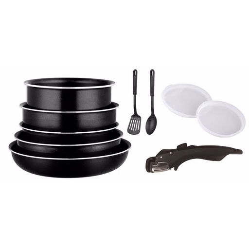 Batterie de cuisine 10 pièces 3 poêles + 2 casseroles + 1 poignées + 2 couvercles noirs