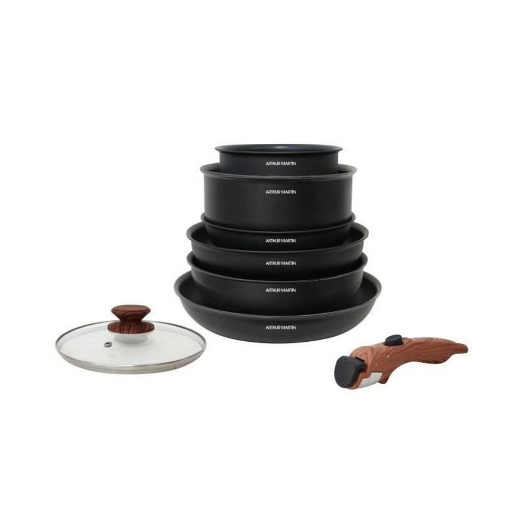 Batterie de cuisine 8 pieces ARTHUR MARTIN - Aluminium - Poignée Bois - Tous feux dont induction
