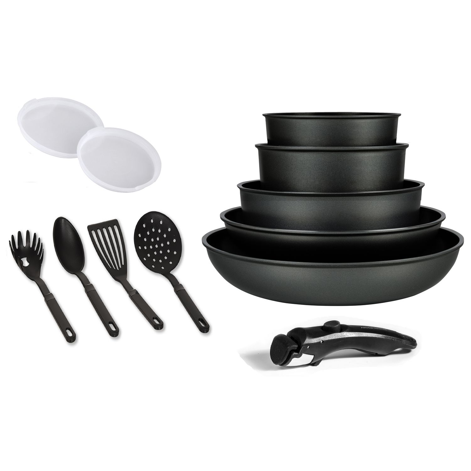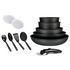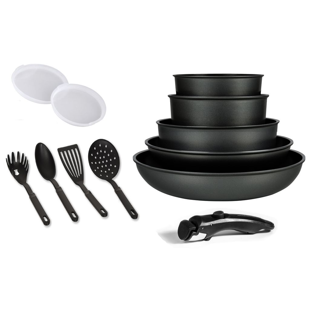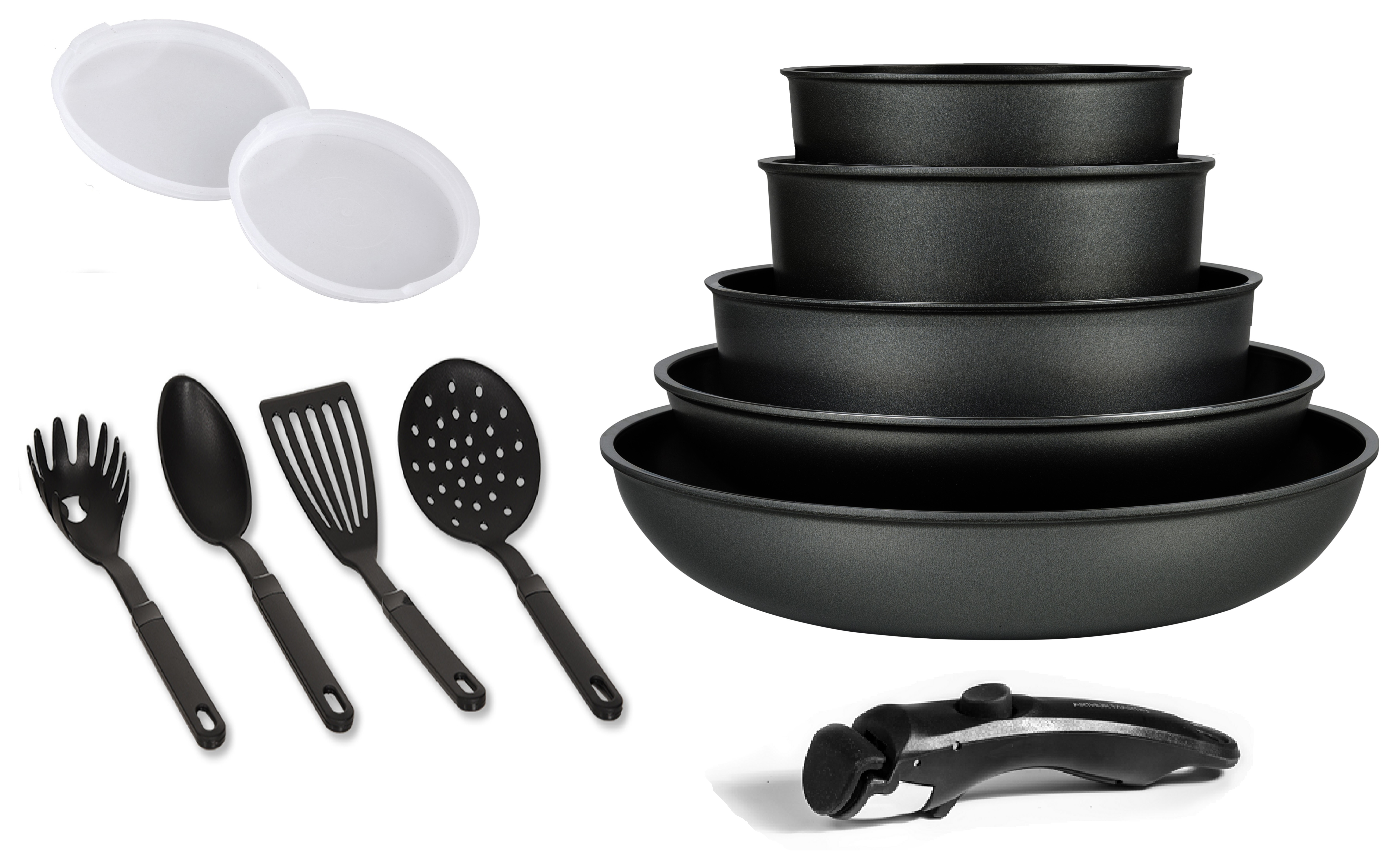 3 poêles 20-24-26 cm + 2 casseroles 16-20cm + 2 couvercles hermétiques 16-20 cm + 4 ustensiles en nylon + 1 poignée