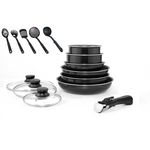 Batterie de cuisine Induction 15 pièces amovible en aluminium noir