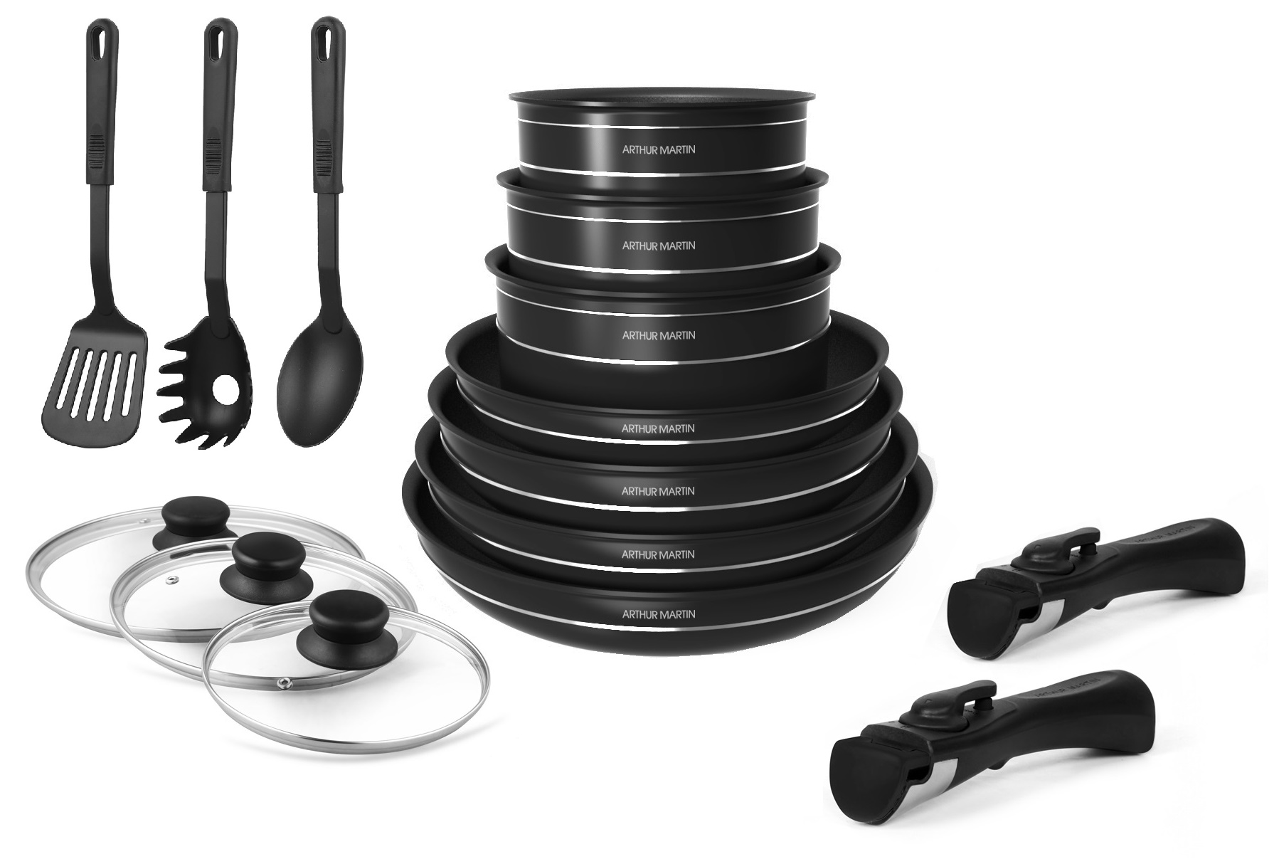 Batterie de cuisine induction amovible 15 pièces aluminium anti adhérent