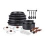 Arthur Martin AM0530 Batterie de cuisine 20 pieces - Poignée amovible effet bois - 3 Poeles 20-22-26 cm - 2 Casseroles 16-20 cm - Sauteuse 24 cm - Wok 26 cm - Crepiere 28 cm - 3 couvercles en verre 16-20-24 cm - 3 couvercles hermétique 16-20-24 cm - 4 ustensiles - 2 Poignées amovible - Tous feux dont induction