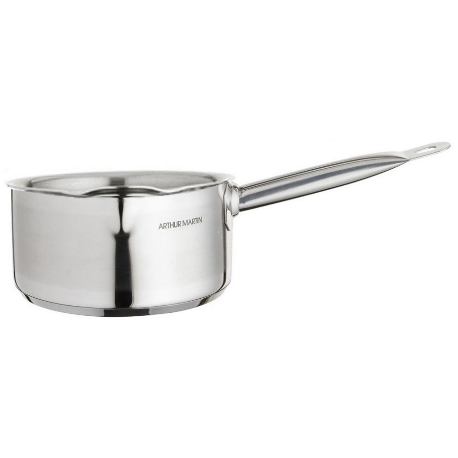 Casserole en inox de 18 cm, compatible tous feux dont induction. Matière robuste en acier inoxydable, poignée en inox, sans revêtement antiadhésif. Poignée fixe, compatible lave-vaisselle.