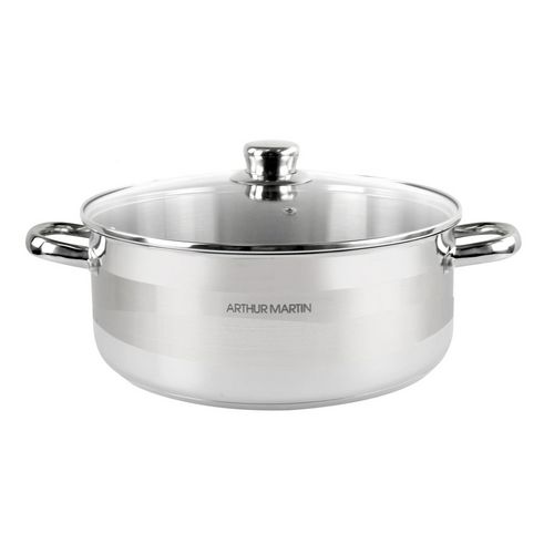 Découvrez le faitout 32cm en inox avec couvercle en verre Arthur Martin ! Ce faitout est compatible tous feux dont induction. Poignée fixe. Bénéficiez d'un confort de cuisson grâce à la compatibilité au lave-vaisselle.