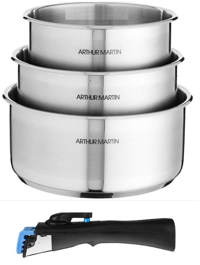 Lot de 3 casseroles 16/18/20 cm en inox + 1 poignée