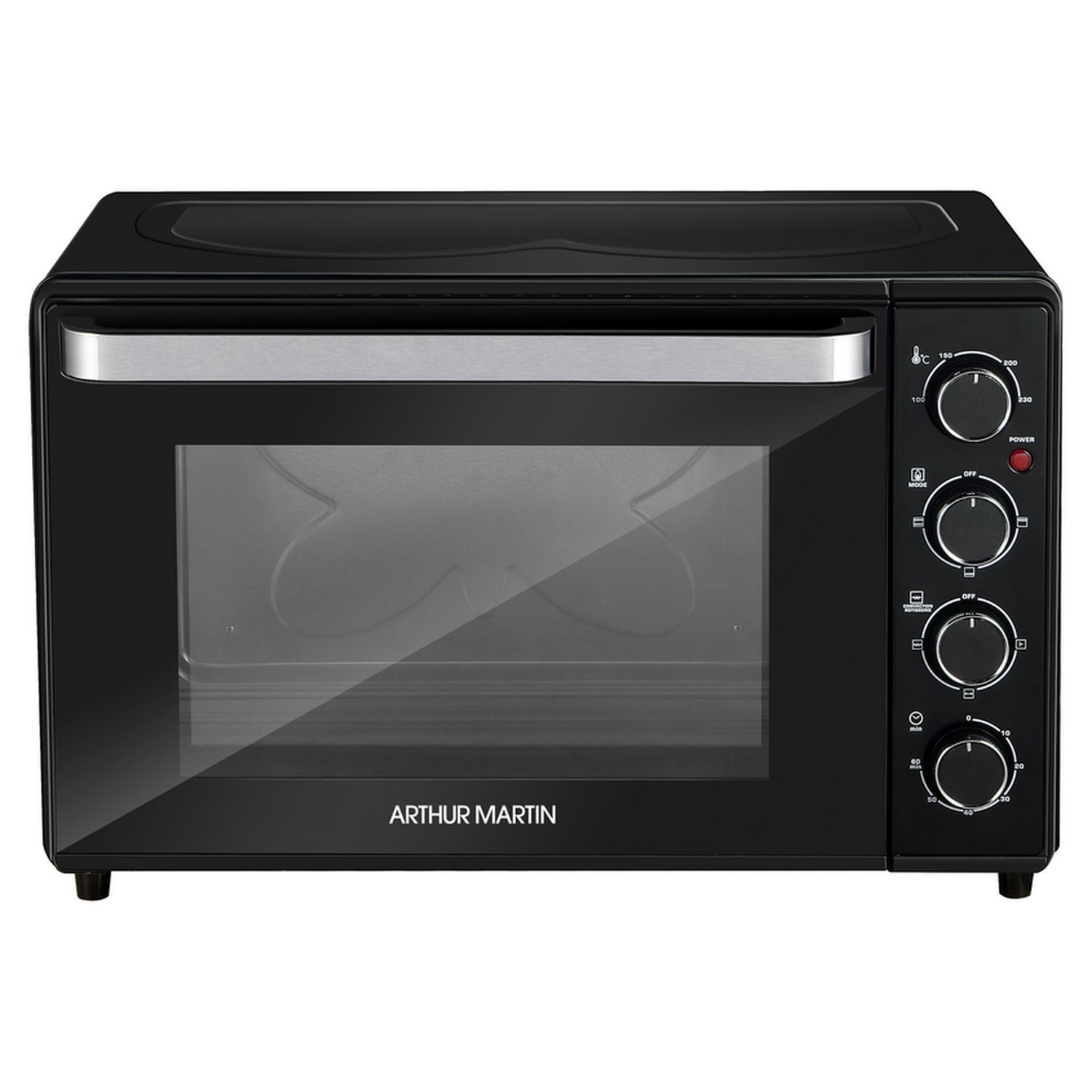 Profitez de ce superbe mini-four électrique Arthur Martin d'une puissance de 2000 W, idéal pour réaliser toutes sortes de cuissons basiques. Avec son grand litrage de 48 L, vous pourrez y faire chauffer de grands plats, idéal pour une colocation ou un couple! A noter que ce four posable est doté d'une minuterie de 60 minutes avec une température allant jusqu'à 230 C°, de quoi faire cuire de délicieux plats. Côté pratique, des boutons rotatifs vous permettront de choisir la température ainsi que le mode de cuisson parmi chaleur tournante ou encore toutes les autres fonctions. La porte froide est un plus car rare sur ce type de produit.