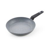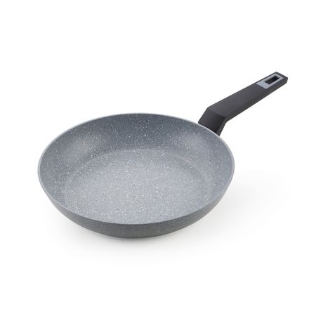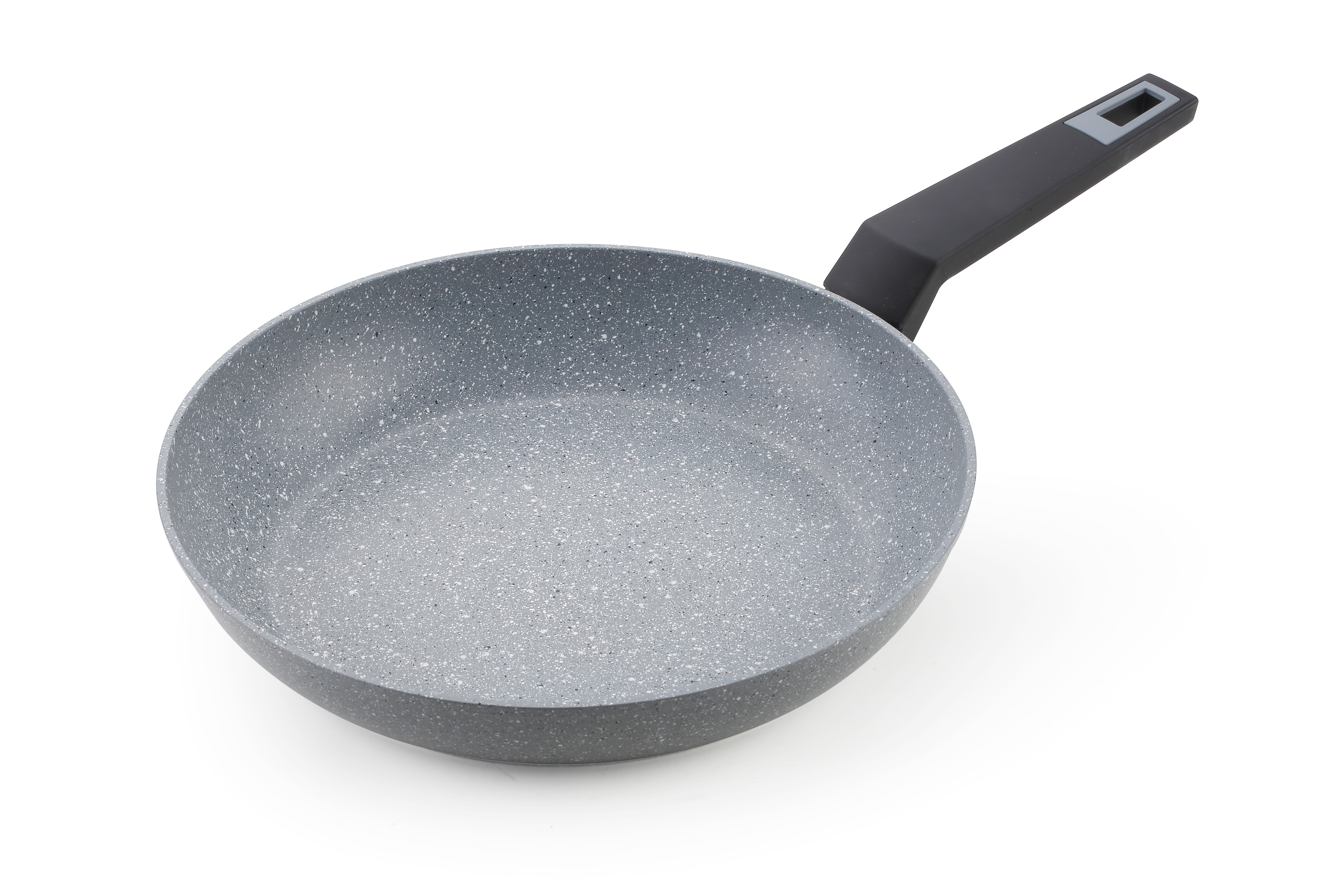 Poêle 24cm gris moucheté en aluminium forgé tous feux dont induction ! Revêtement intérieur antiadhérent effet pierre pour éviter que les aliments restent accroché.