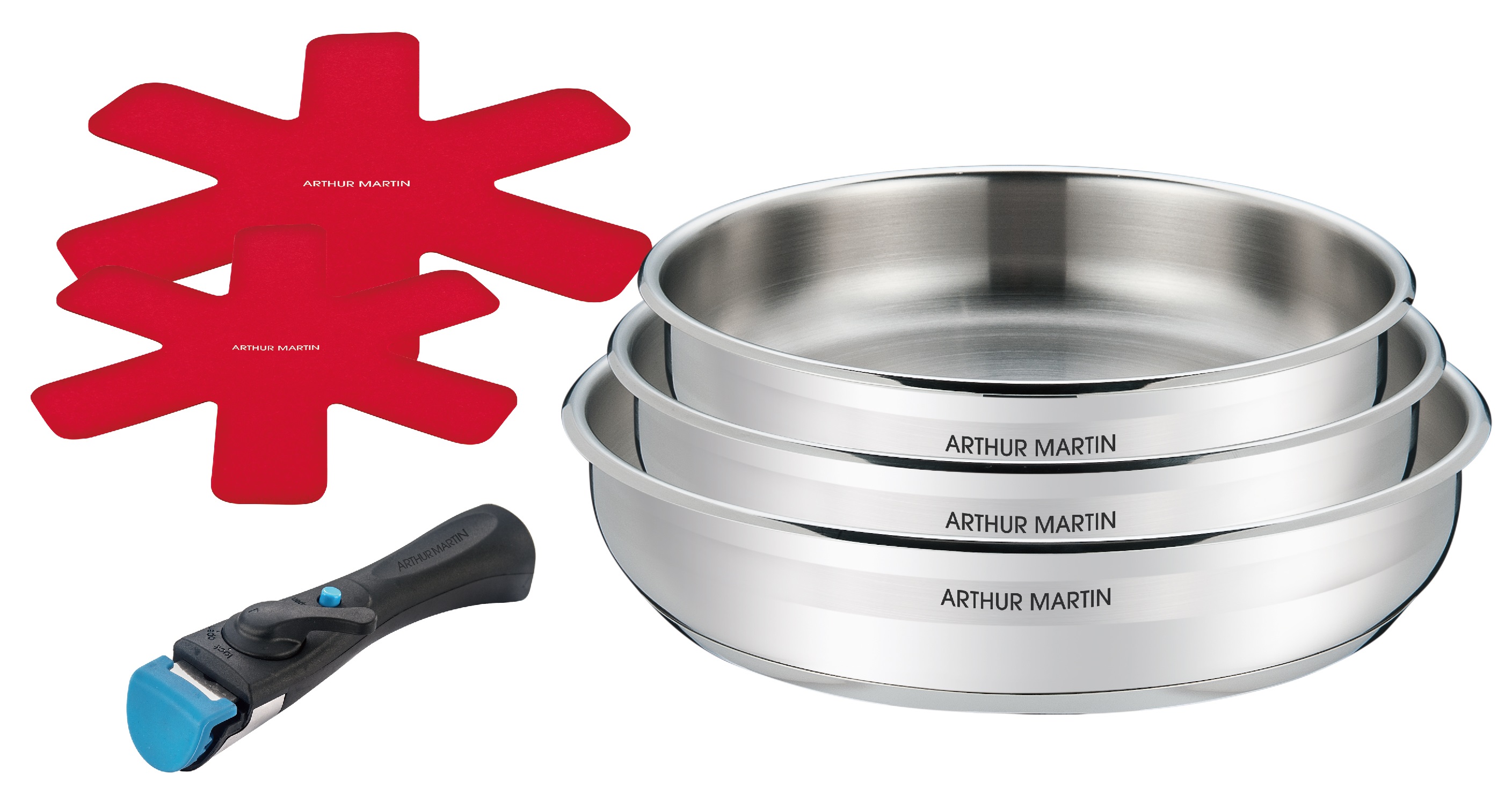 Set de 3 poêles induction amovibles + 2 protèges poêles