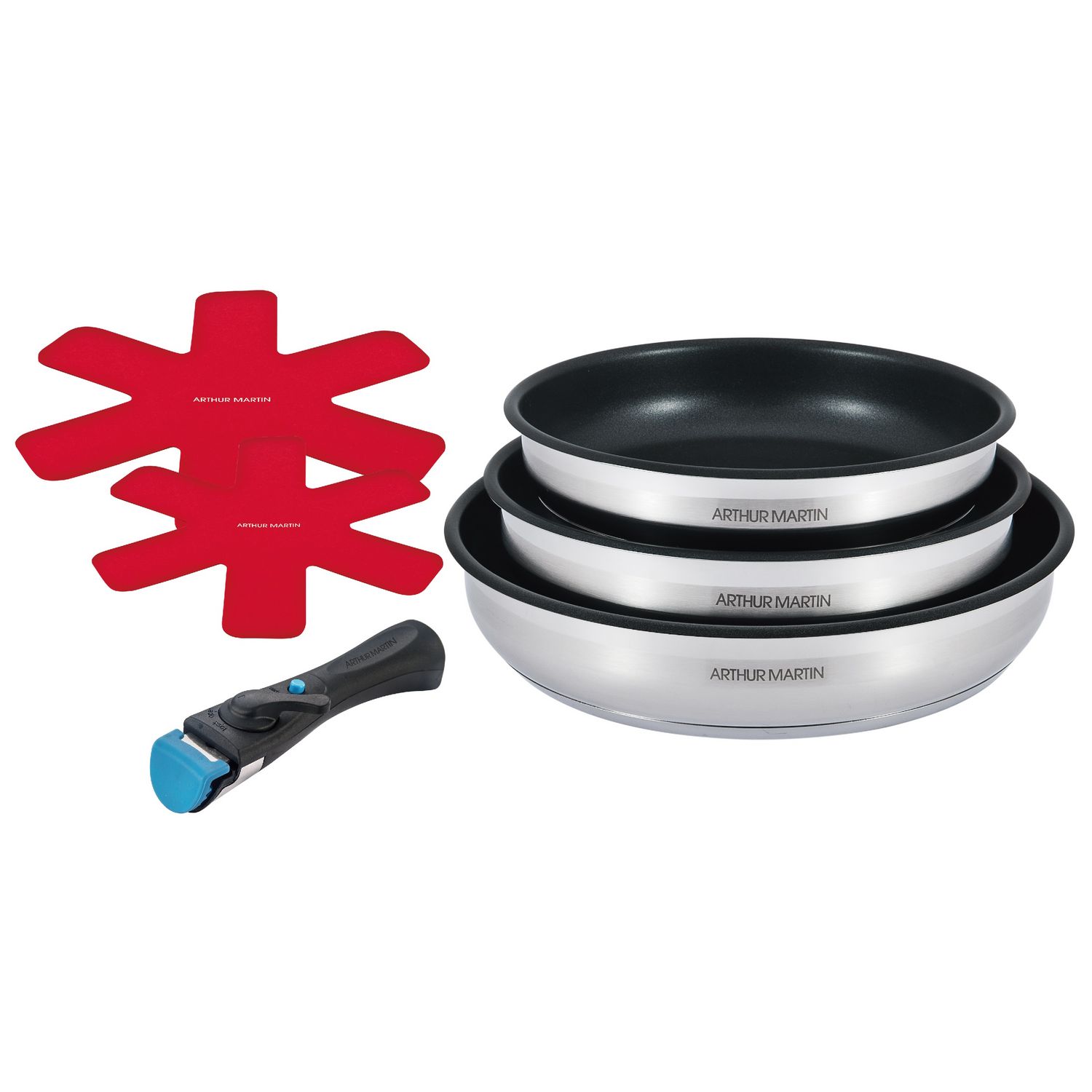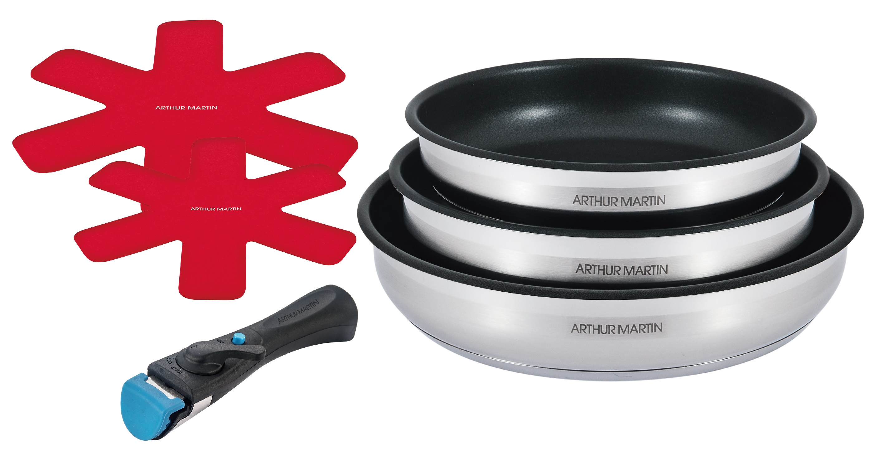 Set de 3poêles induction amovible en inox + 2 protèges poêles
