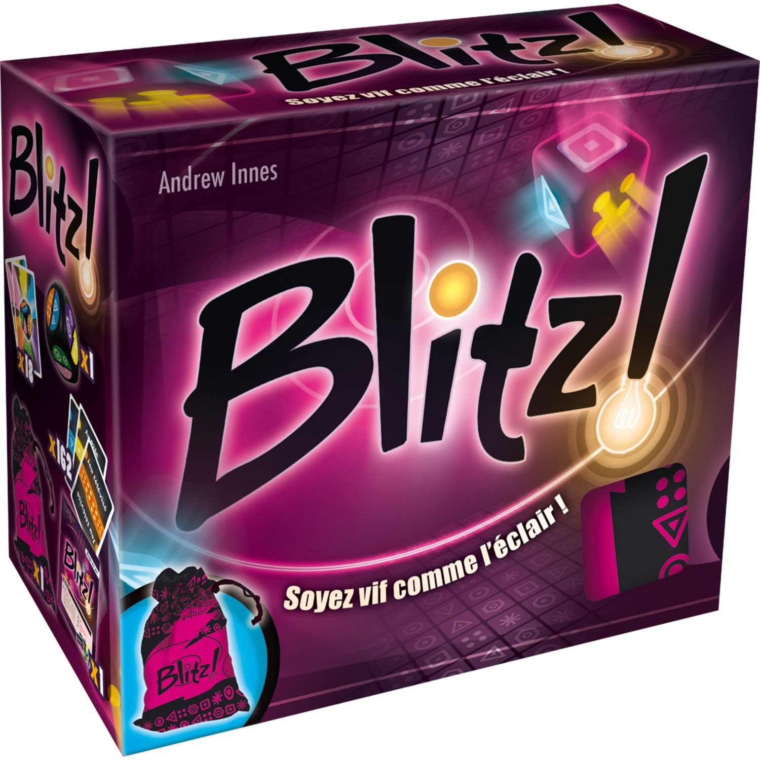 Amuse-toi entre entre amis ou en famille grâce au jeu Blitz d'Asmodee. Tout à tour chaque joueur retourne une carte, dès qu'un symbole identique apparaît entre les cartes de deux joueurs, il y a duel. Le premier joueur qui trouve un mot en rapport avec le thème de la carte de son adversaire gagne le