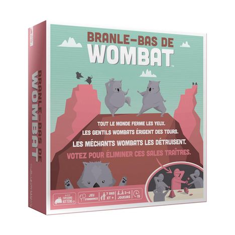 Dans Branle-Bas de Wombat, chacun tire au sort une identité secrète de bon ou de mauvais wombat. Puis tout le monde ferme les yeux. Les gentils wombats construisent des tours, tandis les mauvais les en empêchent. Une fois le temps écoulé, tout le monde ouvre les yeux, on discute et on vote pour déte