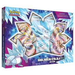 Enrichis ta collection de cartes à jouer et à collectionner avec ce coffret Pokemon Sablaireau d'Alola-GX. Alola est la région dans laquelle se déroule les aventures des jeux Pokémon Soleil et Lune et Pokémon Ultra-Soleil et Ultra-Lune. Le Sablaireau d'Alola est une forme de Sablaireau de type Glace