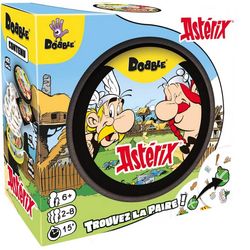 Dobble prend de la potion magique ! Retrouvez tous les personnages et symboles de la célèbre série BD de Goscinny et Uderzo : Astérix, Obélix, Idéfix, ... Contenu :- 55 cartes- 1 règle du jeu- 1 boîte en métal rondeConvient pour des enfants à partir de 6 ans.Nombre de joueurs : de 2 à 8 joueurs.Durée moyenne d'une partie : environ 15 minutes Age minimum : 6 ans