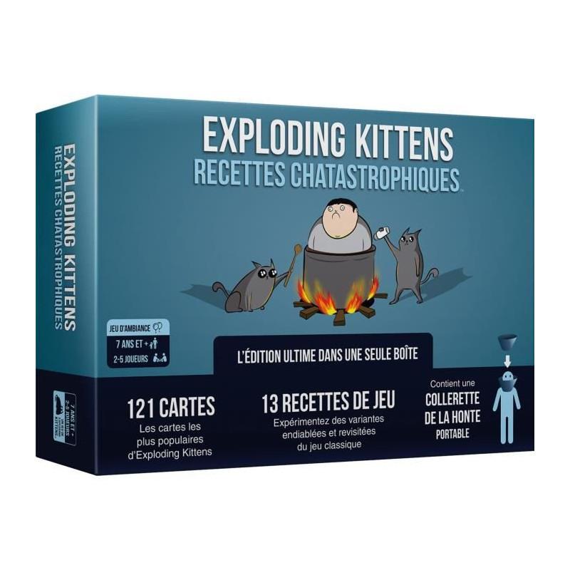 Cette boîte contient tout le nécessaire pour jouer a la version ultime d'Exploding Kittens, le jeu culte, décalé et hilarant des chatons explosifs. C'est une sélection de 121 cartes parmi les préférés des joueurs et les plus célebres, réunies en une seule boîte complete.