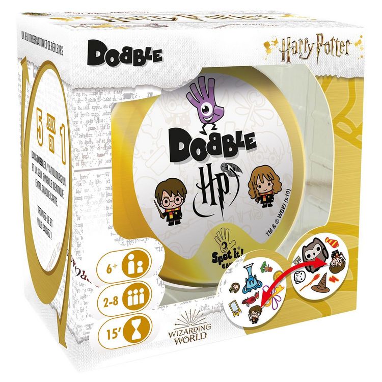 Les fans de Dobble et d’Harry Potter en ont rêvé, le voici, le Dobble Harry Potter ! Ce jeu d’observation et de rapidité pour les enfants dès 6 ans va fédérer toute la famille et les amis autour d’un moment convivial en compagnie des personnages d'Harry Potter, la saga célèbre dans