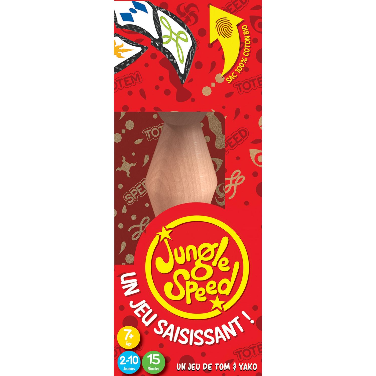 Jeu de mains, jeu malin ! Chacun possède des cartes dont il devra se débarrasser pour emporter la partie tandis qu'un totem de bois trône au centre de la table. A chaque tour, on retourne des cartes, si deux cartes sont semblables, les joueurs concernés doivent saisir le plus promptement possible le totem, et le plus rapide refile alors ses cartes à son infortuné adversaire. Pour corser la difficulté, il existe des cartes pratiquement semblables qui peuvent tromper les joueurs et d'autres qui forceront tous les joueurs à intervenir. Durée de la partie 15 minutes et plus.
