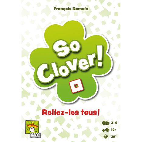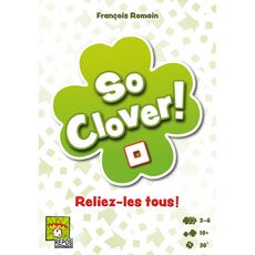 La nouvelle référence du jeu d'association d'idée ?. Dans So Clover vous jouez tous ensemble pour obtenir le meilleur score.?. Chaque joueur créé 4 paires de Mots-Clés (x16) en inscrivant secrètement, sur sa tablette en forme de trèfle, le point commun qui les relie. Ces 4 mots deviennent alors des indices. Ensuite, les Mots-clés sont mélangés à 4 intrus et c'est ensemble, qu'il faut tenter de retrouver les 4 paires de Mots-Clés de chaque joueur. Plus on retrouve de mots, plus on marque de points.?. A partir de 10 ans. 3 à 6 joueurs. Durée de jeu : 30 min
